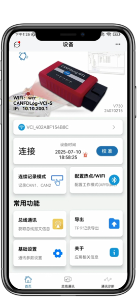 手机近端直连设备模拟记录仪在线工作,远程同步查看诊断数据及配置